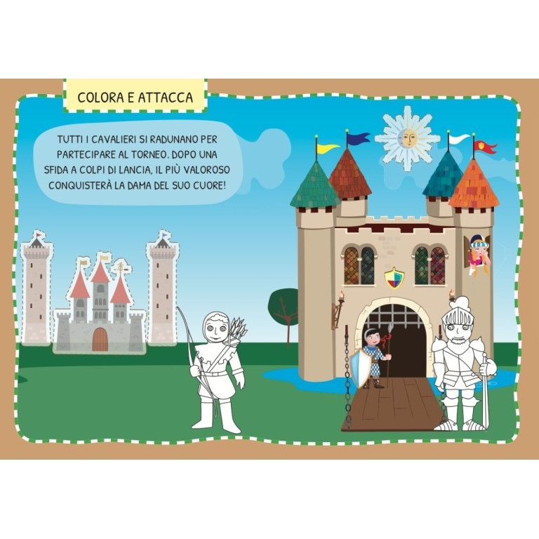 Leggi il libro di 16 pagine e divertiti con le attività proposte. 100 stickers, 200 trasferibili e una penna speciale da ricalco per completare e colorare con la fantasia i quattro fondali del castello!