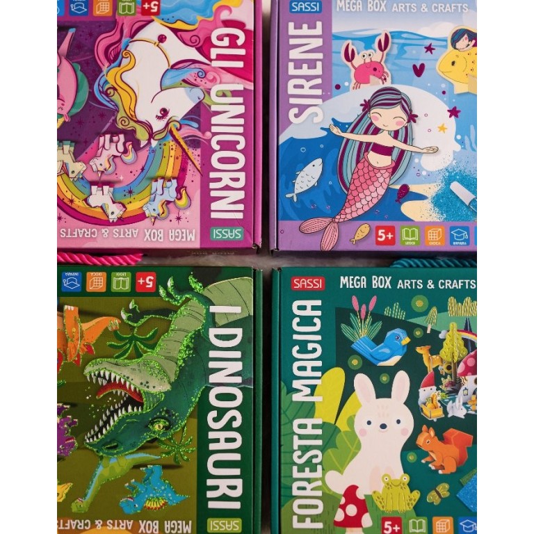 Una scatola di grande formato contenente un libro da colorare e da completare con gli stickers e tante diverse attività arts & crafts in grado di stimolare la fantasia e l’apprendimento.