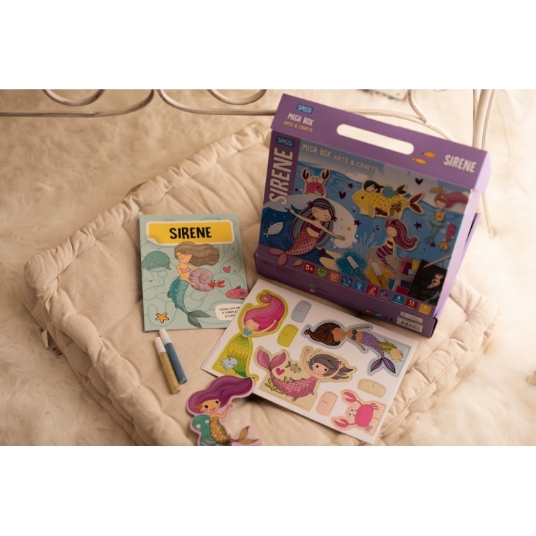 Una scatola di grande formato contenente un libro da colorare e da completare con gli stickers e tante diverse attività arts & crafts in grado di stimolare la fantasia e l’apprendimento.