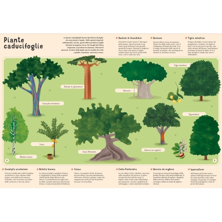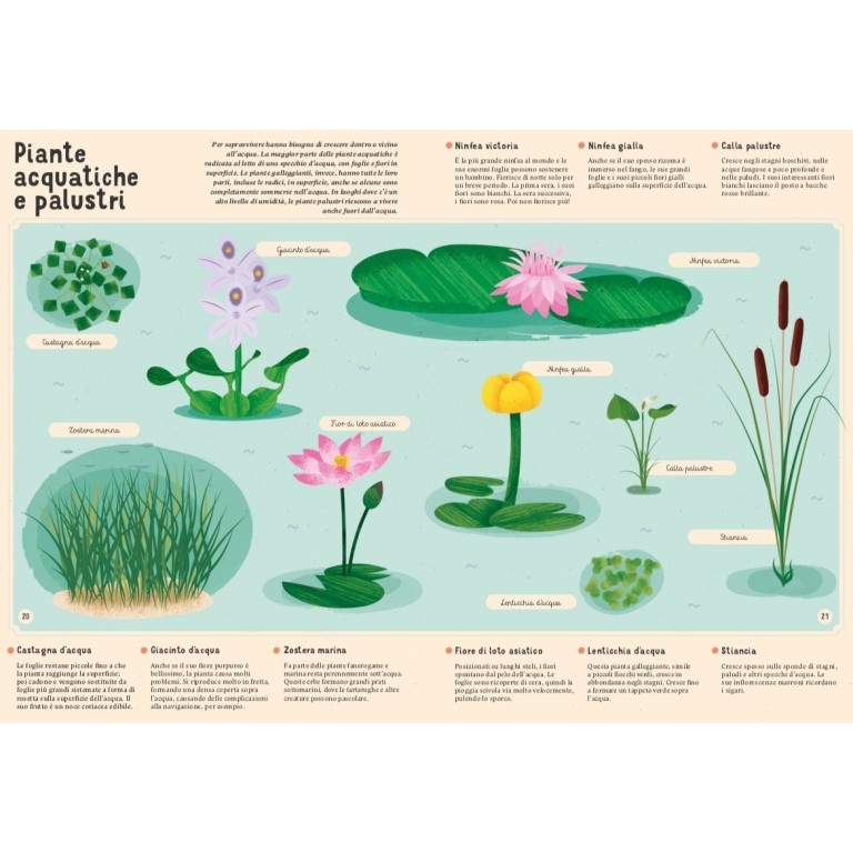 Sulla Terra crescono moltissime piante: dai fiori più piccoli agli alberi giganteschi, dai funghi ai licheni. Grazie a questa enciclopedia, conoscerai molte delle specie vegetali tra le più note e interessanti, provenienti da tutto il mondo. Inoltre, questo libro ti mostrerà i gruppi in cui le piante, i funghi e i licheni possono essere classificati. Ti presenterà misteriosi licheni, funghi commestibili e non (così come quelli velenosi), e le piante da fiore o senza fiori; imparerai molte cose su alberi, arbusti ed erbe provenienti da ogni angolo del globo.