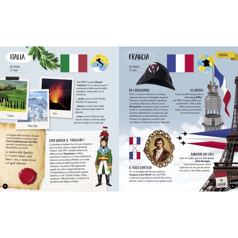 Poche cose sono più rappresentative per uno Stato della propria bandiera. Quanti tipi di bandiere esistono? Quante sono quelle ufficialmente riconosciute? Perché si scelgono determinati colori? I loro simboli hanno un significato? Un atlante ricco di interessanti informazioni per rispondere a questi e a tantissimi altri interrogativi sui vessilli di tutto il mondo!