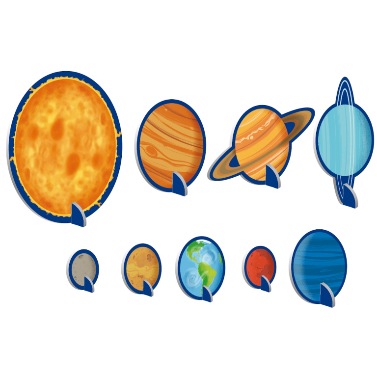 The box contains a 64-page atlas, 40 cards with scientific questions, a 3D model of the Solar System, and a giant 500-piece puzzle to discover the secrets of Space.