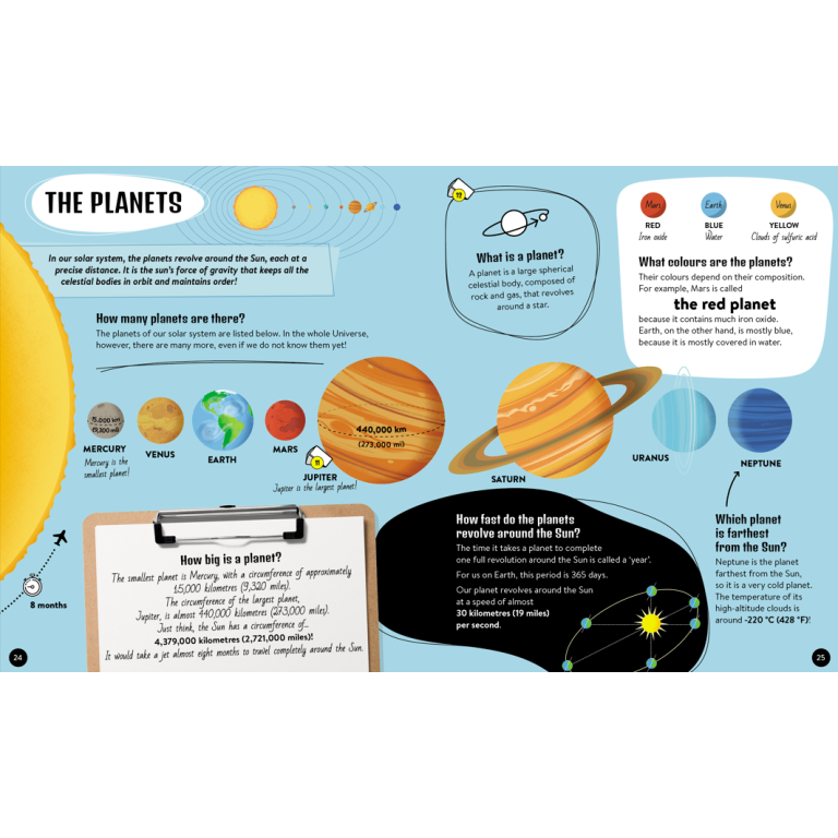 Humans have always looked at the sky with wonder and curiosity. After decades of study and exploration, space still holds many mysteries to unravel. Flip through this atlas, packed with fascinating information, and satisfy all your questions about the Universe around us!