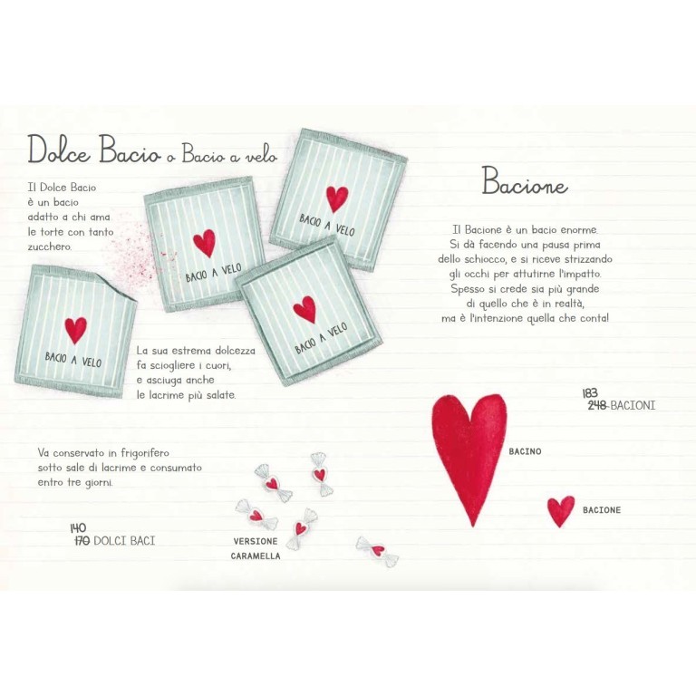 Segui Felice mentre fa l’inventario del suo dolce negozio di baci in barattolo! Nel raffinato cofanetto, impreziosito dalle romantiche illustrazioni ispirate all’albo bestseller La Baceria di Felice di Cristiana Soriano troverai un libro che raccoglie tutti i baci del negozio (e tanti altri) e un set di 30 cartoline.