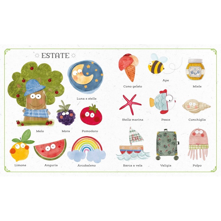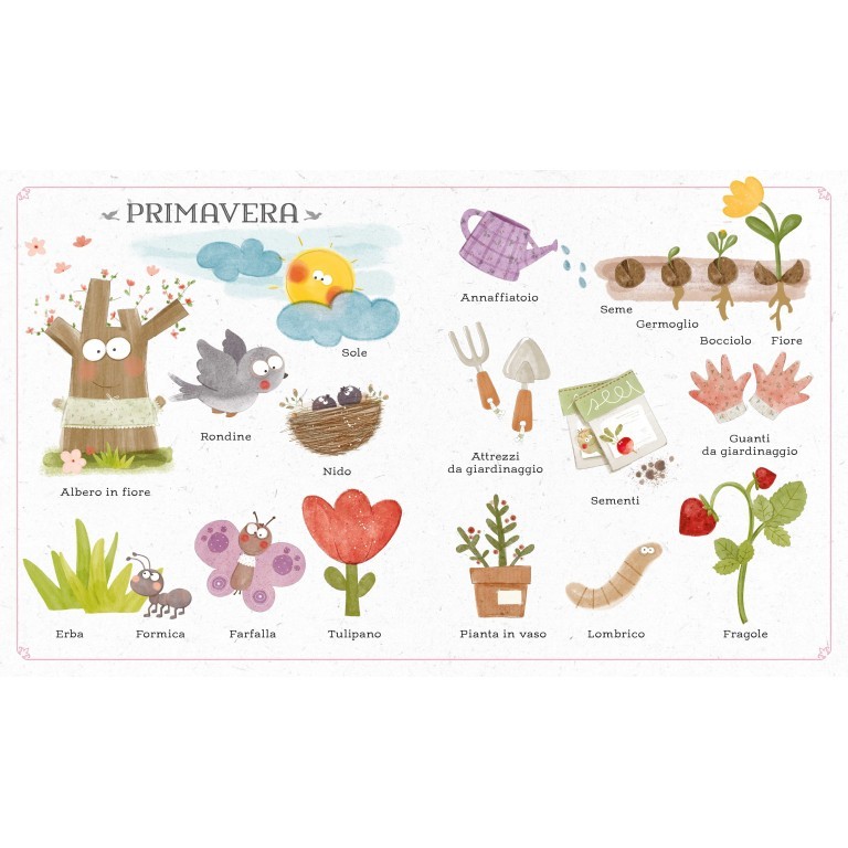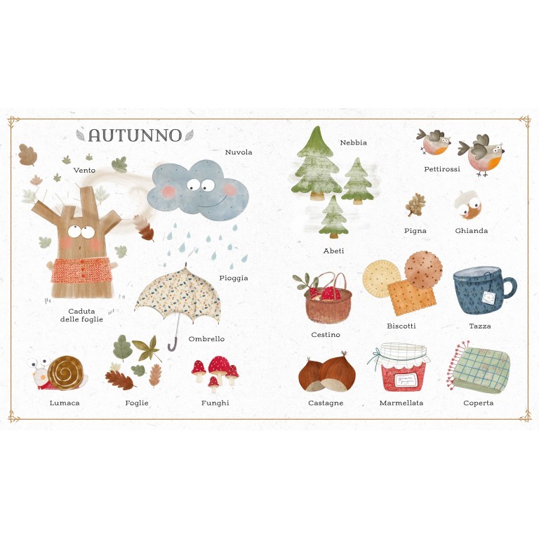 Un vocabolario illustrato per scoprire le meraviglie di ogni stagione imparando tante parole grazie all’aiuto delle dolci e colorate illustrazioni. Uno strumento ideale per aiutare i bambini ad ampliare il loro vocabolario.
