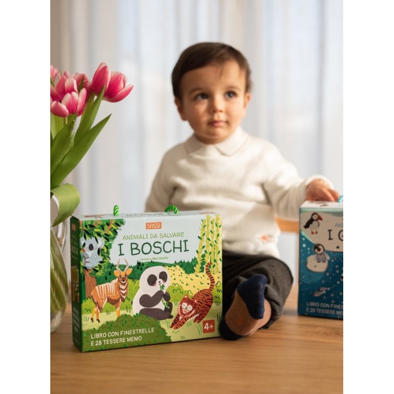 Solleva le finestrelle all’interno del libro e scopri tante curiosità sugli animali delle foreste temperate, sull’ambiente in cui vivono e sul perché si trovano in pericolo. Poi gioca con le carte memo e allena la tua memoria!