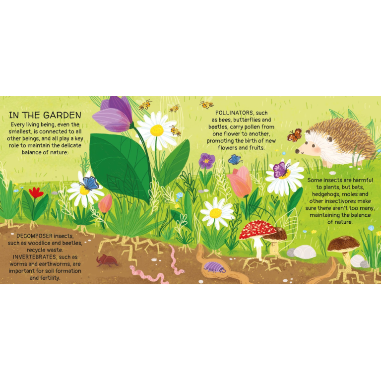 Lift up the windows inside the book and discover many curiosities about garden animals and their relationship with humans. Then play the board game, inspired by the traditional "Snakes and Ladders"!