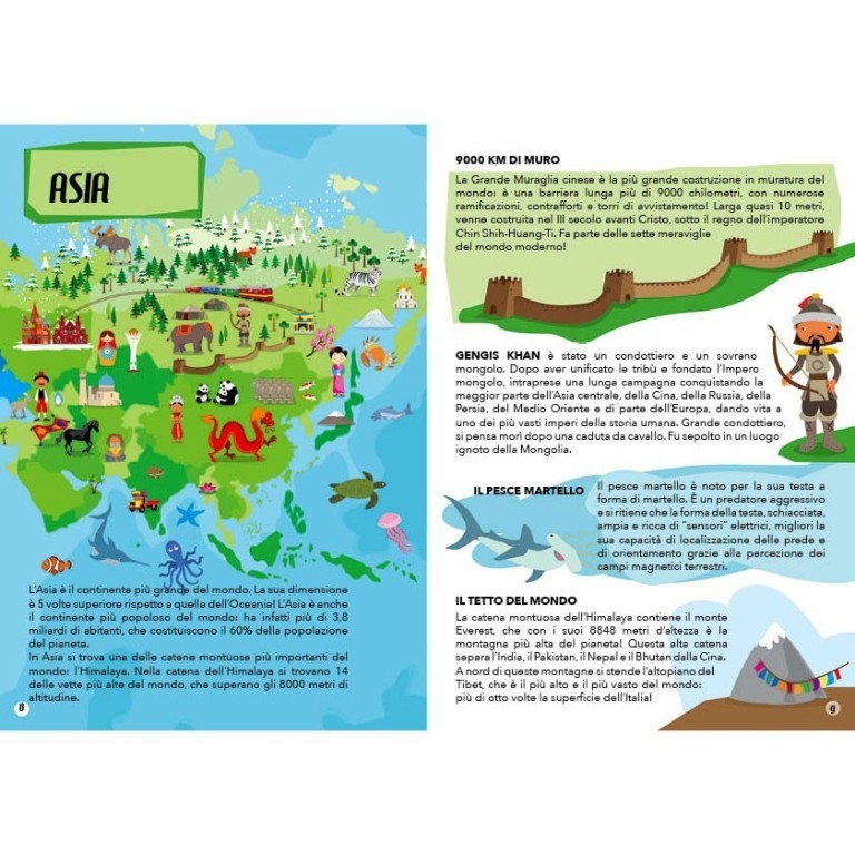 Parti per un emozionante viaggio attraverso i due emisferi: guarda quanto sono profondi gli oceani, scopri gli animali più grandi e quelli più feroci, conosci le mega costruzioni più curiose e strabilianti! Leggi il libro, impara tante curiosità e metti alla prova la tua memoria componendo il puzzle da 205 pezzi!
