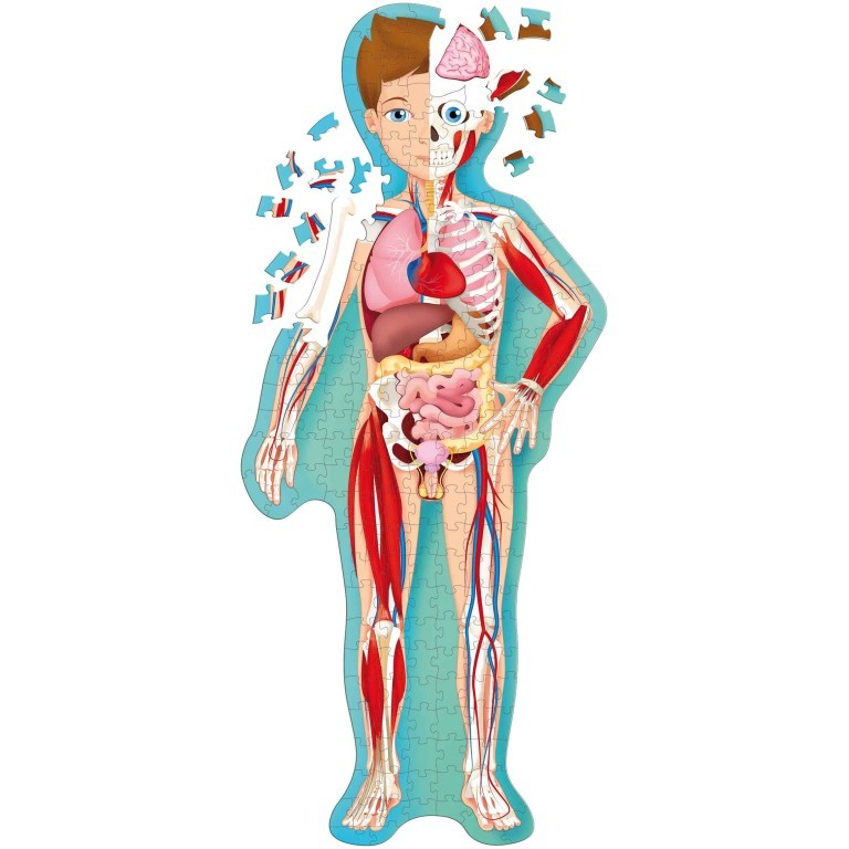 Il corpo umano è una “macchina” perfetta: impara tante curiosità sullo scheletro, i muscoli, la circolazione sanguigna, gli apparati respiratorio e digerente e come funziona il cervello. Poi componi il puzzle di 200 pezzi arricchito da 10 maxi pezzi!
