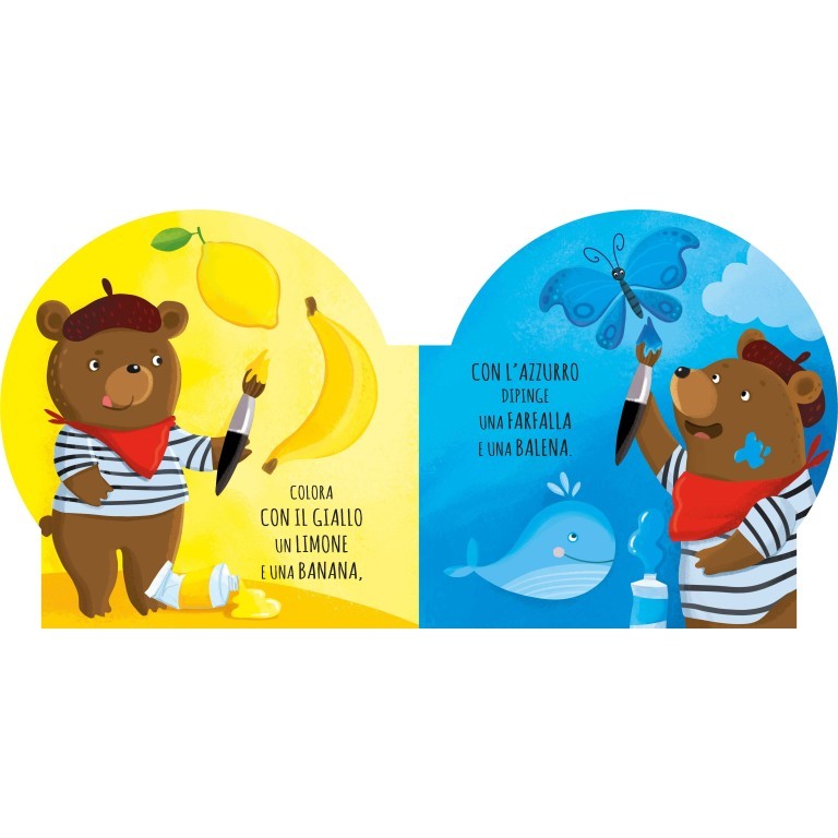 Scopri tutti i principali colori facendoti accompagnare da Orsetto e dalla sua passione per l’arte. Un coloratissimo libro sagomato in rima, che permetterà ai bambini di conoscere i colori primari e secondari.