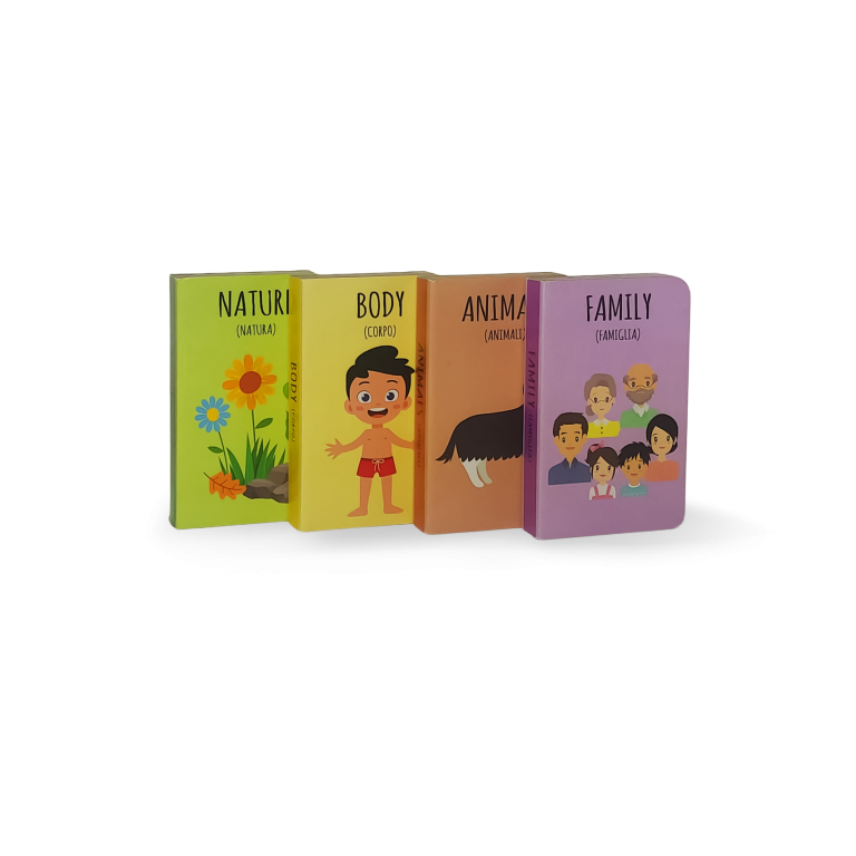 Otto robusti libretti con argomenti diversi ti insegneranno le prime parole in inglese.