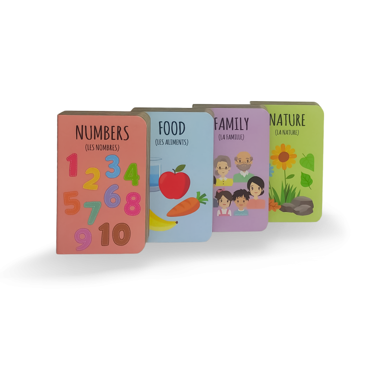 Huit petits livres solides, chacun sur un thème différent, t’apprendront tes premiers mots en anglais. Une magnifique bibliothèque richement illustrée pour apprendre l’anglais.