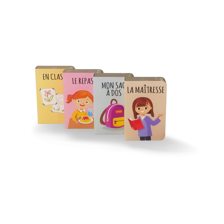 Huit petits livres solides, chacun sur un thème différent, t’apprendront tes premiers mots en anglais. Une magnifique bibliothèque richement illustrée pour apprendre l’anglais.