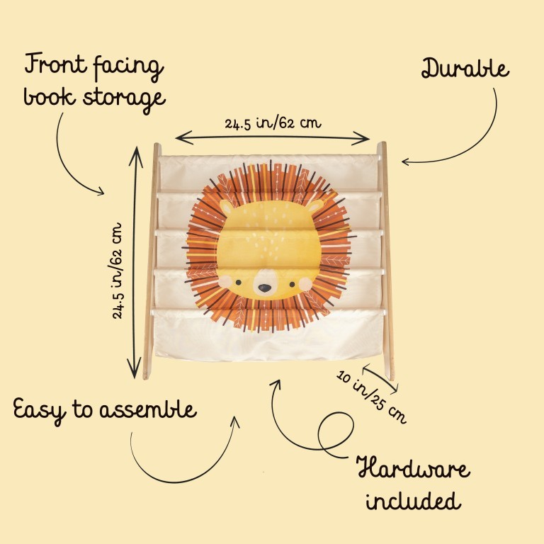 La libreria Montessori in legno di Chompy il leone è perfetta per permettere ai bambini di scegliere in libertà e mantenere in ordine i propri libri. Alta solo 60 cm, la libreria da pavimento è ideale per incoraggiare i più piccoli all’indipendenza nel rispetto del pensiero Montessoriano. Grazie alla libreria Montessori i bambini avranno sempre i loro libri preferiti a portata di mano, tenuti al sicuro dal coraggioso leone Chompy!