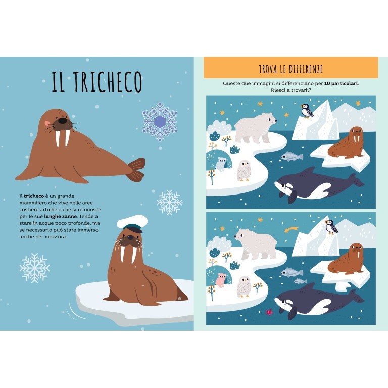 Un libro di attività per i più piccoli con pagine da colorare, labirinti da risolvere, adesivi da attaccare e tante divertenti informazioni sull’ambiente polare e i suoi abitanti. Un libro innovativo e ricco di attività diverse per i bambini dai tre anni in su, per imparare i concetti di base e sviluppare la manualità.