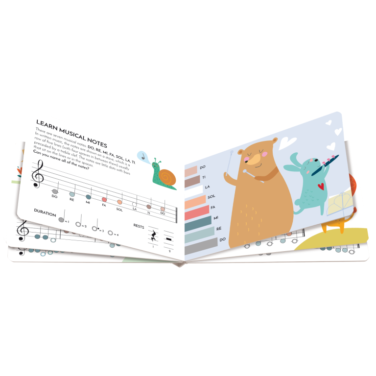 Have fun playing your first wooden xylophone and learn to read music! A sweet little book will teach you to recognize the seven musical notes and play some well-known melodies