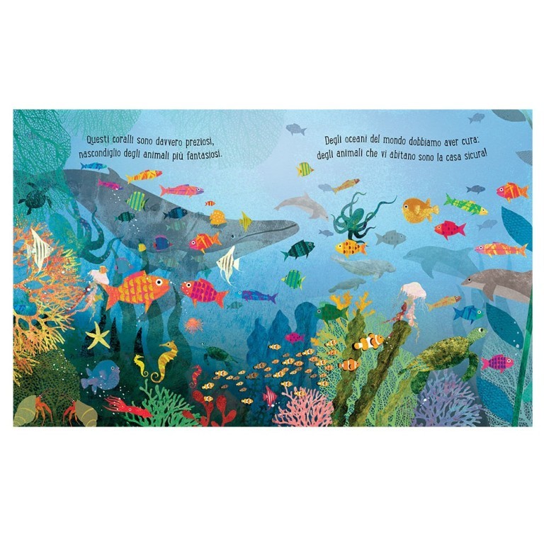 Un libro meraviglioso per scoprire la magia e i misteri del mare. Attraverso le illustrazioni di Britta Teckentrup, potrai immergerti senza paura nel mondo sottomarino: conoscerai le straordinarie creature che lo popolano, come i coralli e i tanti pesci colorati!