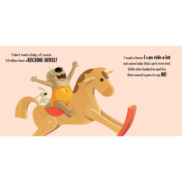 Sweet Little Otter has always been the only one for Mom and Dad. But what happens if a little brother or sister is on the way? Could they perhaps be exchanged for something more useful?