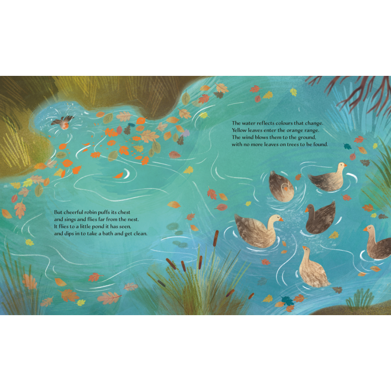 The air is cool and the days are getting shorter: it's time to say goodbye to summer. Robin sees the leaves, now yellow, detaching from the branches and fluttering like butterflies.