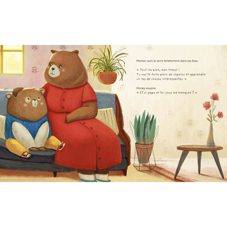 Demain, c’est la rentrée, et à l’idée d’aller à l’école, même pour quelques heures, Honey se sent triste. Son papa et sa maman le rassurent et lui préparent une surprise : un bocal rempli de paquets colorés qui contiennent, chacun, un petit cadeau plein d’amour créé spécialement pour lui...