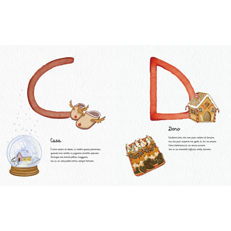 Un albo illustrato tenero e pieno di atmosfera, che accompagna i lettori nell’attesa del Natale con una parola per ogni lettera dell’alfabeto, spiegata in rima e impreziosita da illustrazioni calde e incantate.