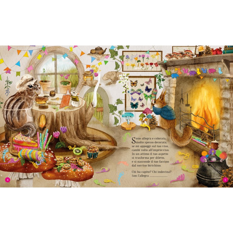 Questo libro è una vera e propria caccia al tesoro: in ogni illustrazione, infatti, è nascosta la soluzione di un indovinello in rima che descrive un elemento tipico del Carnevale. Risolvi l’indovinello e poi cerca nell’illustrazione dove si nasconde il personaggio o l’oggetto che corrisponde alla soluzione!