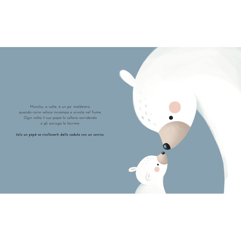 Questo albo illustrato celebra la magia dei piccoli gesti quotidiani che fanno dei papà un rifugio sicuro, una forza discreta e una presenza insostituibile. Attraverso una narrazione tenera e poetica, popolata da dolci protagonisti animali, il libro racconta l’unicità di ogni papà e il legame speciale che lo unisce al proprio cucciolo. Un inno alla fantasia, alla protezione e all’amore paterno, capace di emozionare grandi e piccoli e di diventare un dono prezioso da condividere insieme.