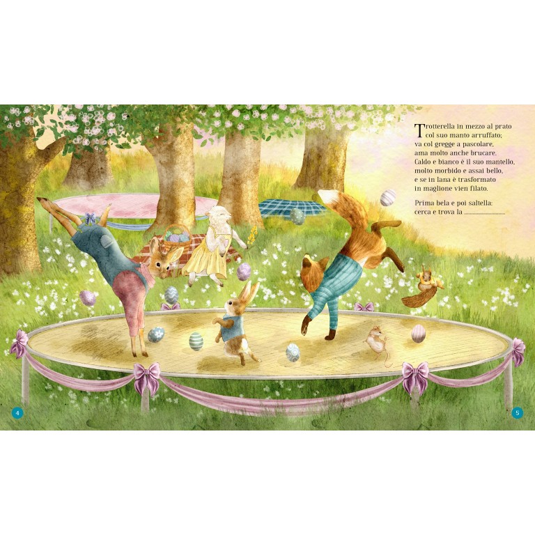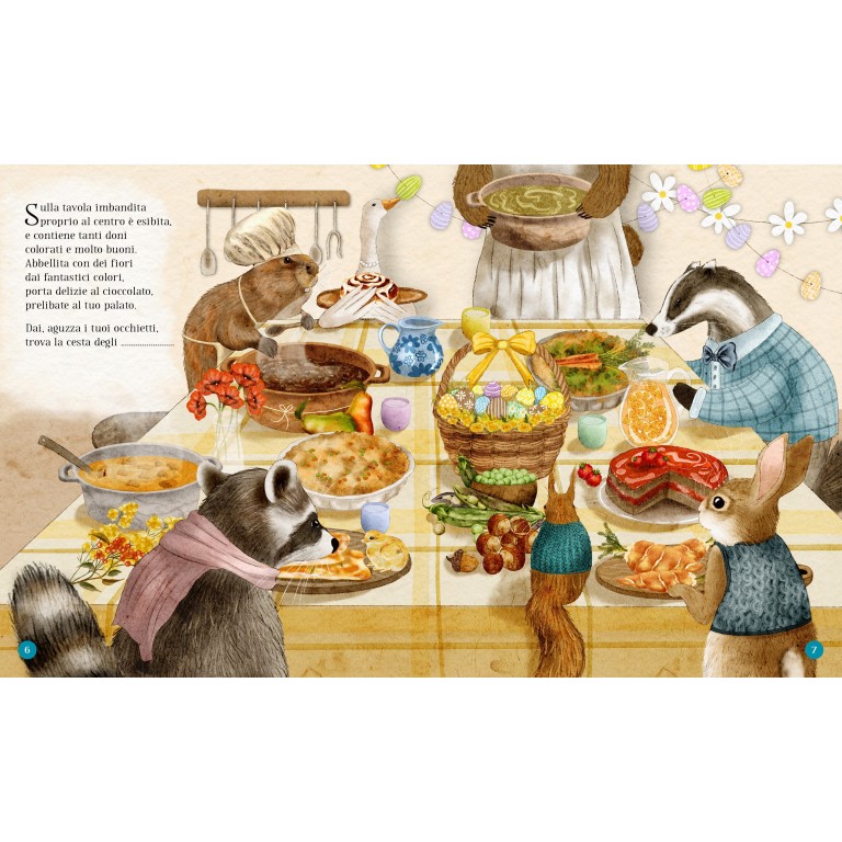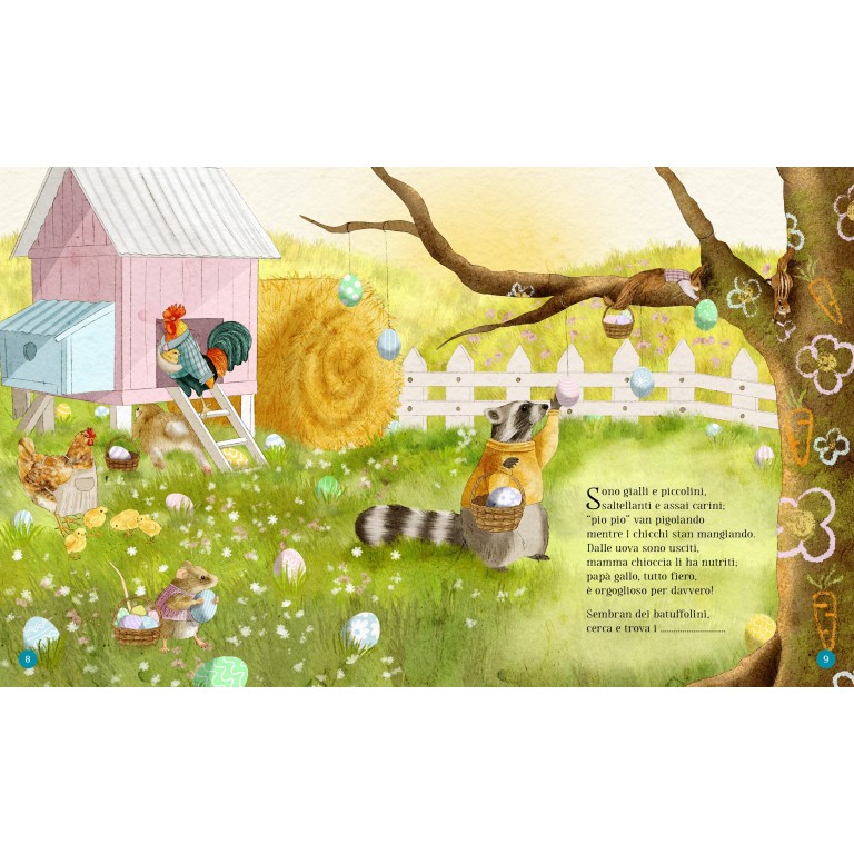 Questo libro è una vera e propria caccia al tesoro: in ogni illustrazione, infatti, è nascosta la soluzione di un indovinello in rima che descrive un elemento tipico della Pasqua. Risolvi l’indovinello e poi cerca nell’illustrazione dove si nasconde il personaggio o l’oggetto che corrisponde alla soluzione!