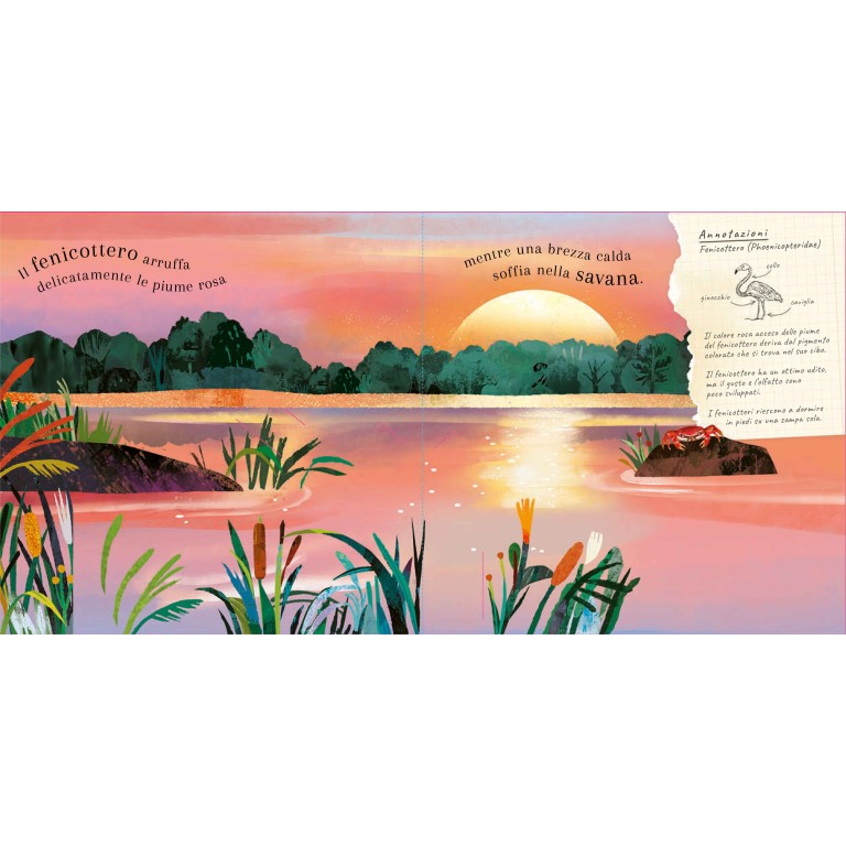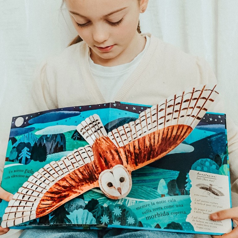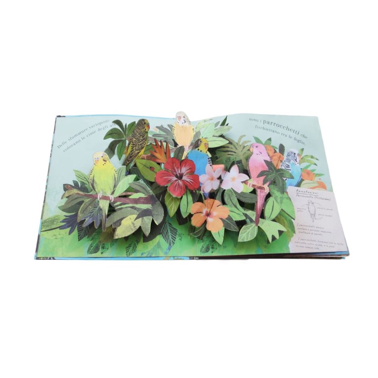 Un libro che unisce poesia e divulgazione, capace di affascinare grandi e piccoli grazie a testi semplici e ricchi di curiosità, accompagnati da illustrazioni raffinate e scene tridimensionali spettacolari. I pop-up scenografici trasformano la lettura in un vero spettacolo visivo, portando i bambini “dentro” il mondo degli uccelli. Testi brevi e curiosità naturalistiche stimolano l’apprendimento, unendo rigore divulgativo e magia narrativa.