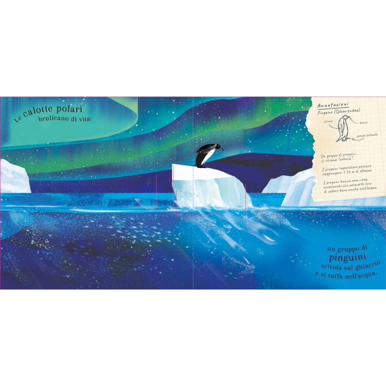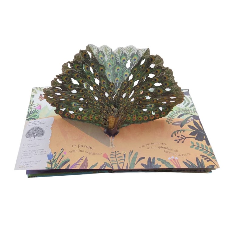 Un viaggio spettacolare tra piume colorate, voli sorprendenti e habitat affascinanti. Dai colibrì che battono le ali più veloci del vento ai pavoni che aprono ruote maestose, fino alle colonie di pinguini che animano i ghiacci: pagina dopo pagina, i pop-up 3D danno vita al mondo degli uccelli in modo coinvolgente e realistico.