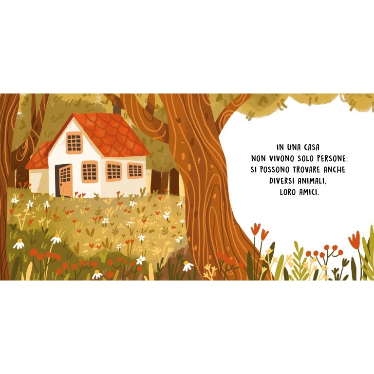 Cosa succede all’interno di una casa? Quali altre creature ci vivono, oltre agli esseri umani? Dal cagnolino al canarino, dal pesce rosso al criceto, ognuno con il suo particolare verso.