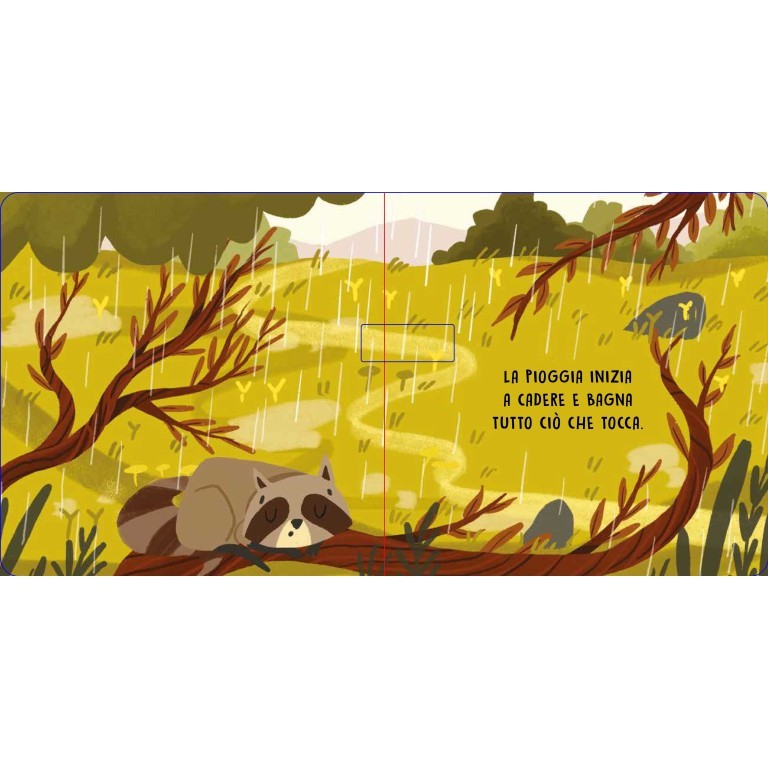 Accompagna il piccolo procione alla scoperta dei suoni della natura: scopri la pioggia, il temporale, persino la grandine, fino alla quiete assoluta del ruscello.