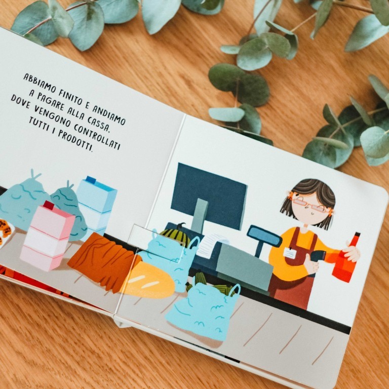 Un libro sonoro con illustrazioni semplici e delicate e sei deliziosi suoni, per imparare a riconoscere i suoni prodotti all’interno di un supermercato. Non c’è bisogno di premere un pulsante: basta girare la pagina per far iniziare i suoni!