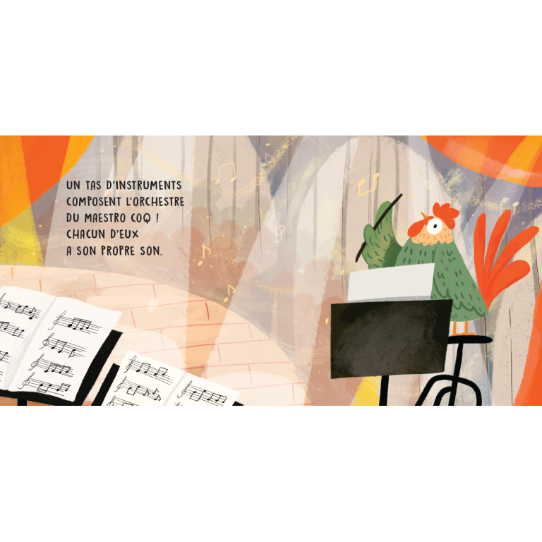 Quels instruments composent l’orchestre du maestro Coq, et combien de sons différents produisent-ils ? Découvre-les tous dans ce petit livre sonore où, page après page, tu apprendras tout ce qui se passe pendant un concert.