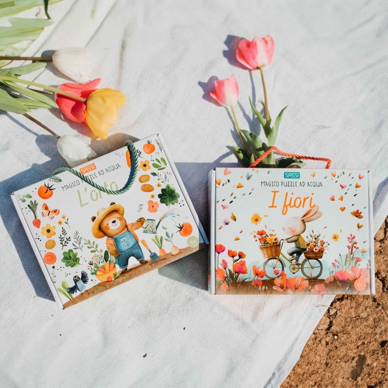 Divertitevi a scoprire tutto sull’orto, sulle piante e sugli insetti che lo abitano. Nella scatola troverete un libro cartonato con deliziose illustrazioni e tante nozioni sui fiori; e un puzzle con dettagli da colorare con l’acqua.