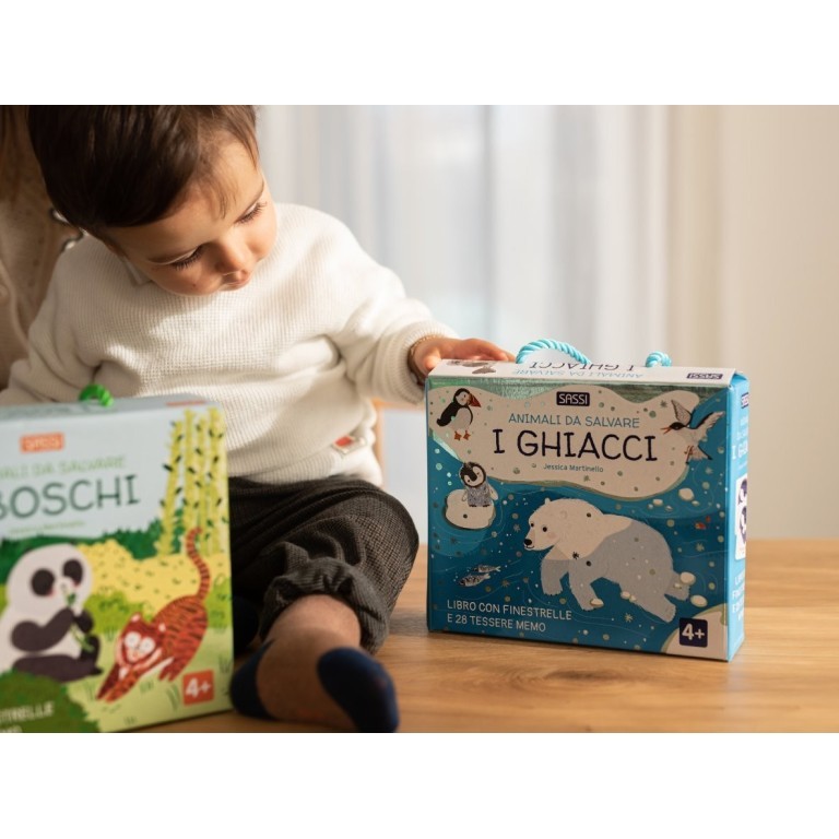 Lift the little windows inside the book and discover lots of interesting facts about the animals of the Poles, their environment and why they are in danger. Then play with the memo cards and train your memory! An educational game-book dedicated to the Planet's endangered species that stimulates curiosity and learning.
