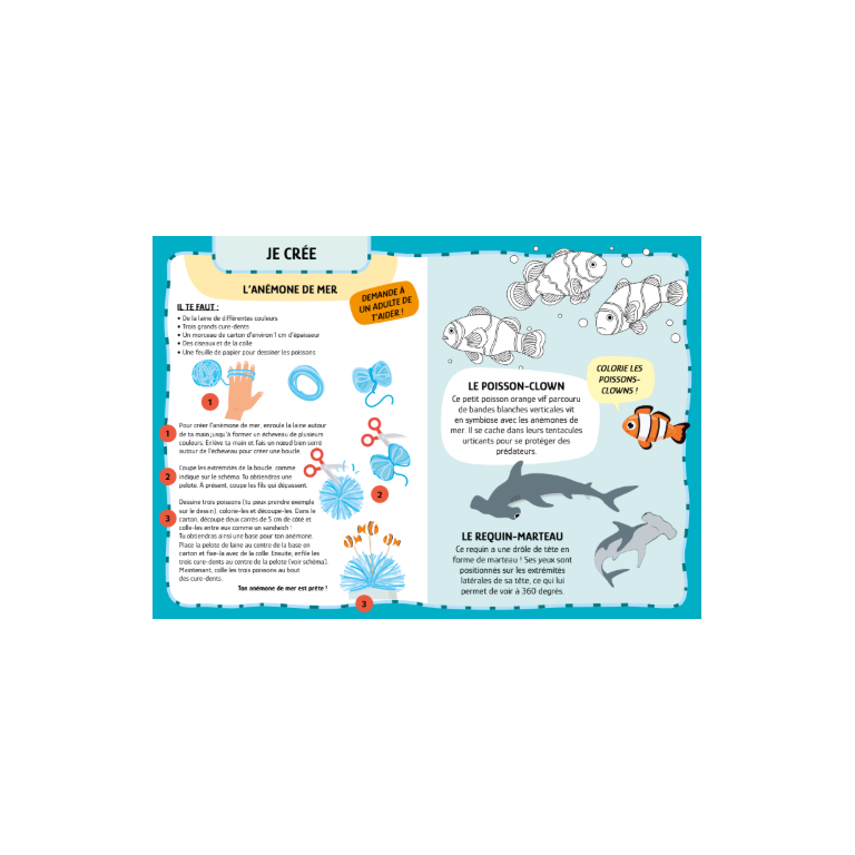 Découvre la mer ! Colle les autocollants, colore les pages et réalise des amusantes activités diy.
