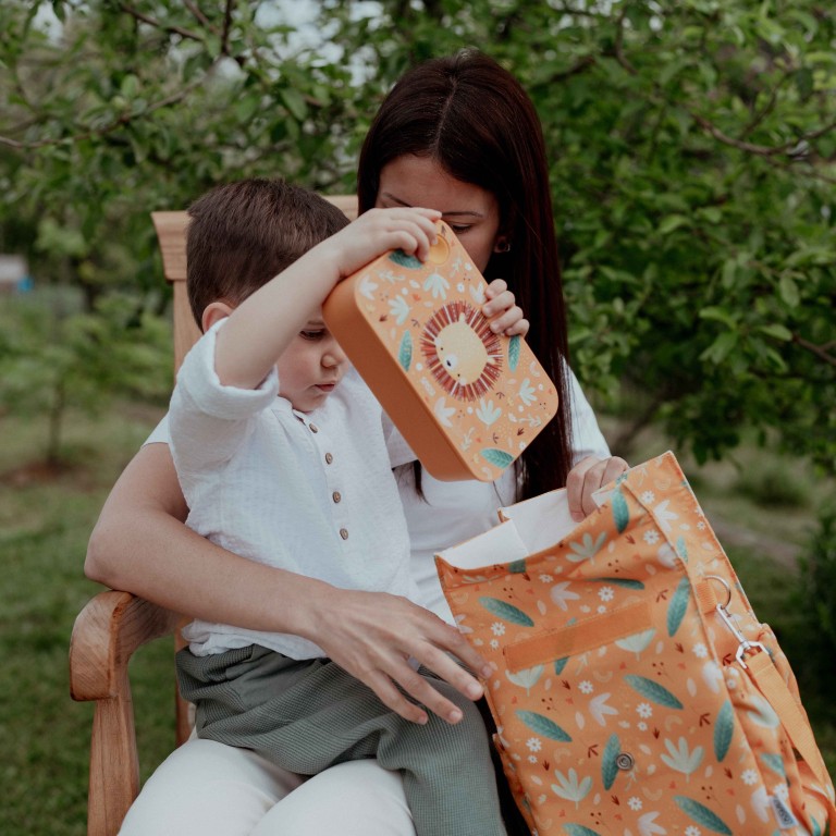 Lunch Box in pet riciclato per bambini, perfetta per accompagnare i più piccoli all’asilo e decorata con il coraggioso leone Chompy.