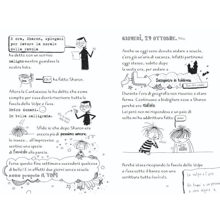 Buuu, un anniversario! Questa domenica i nonni festeggiano le nozze d’oro. Con tutti i parenti, nel vecchio castello di Sassopietra in Valdireno. Papà ha già organizzato una quantità paurosa di cose: caccia al tesoro, escursioni e gite in canoa. Ma la cosa peggiore è che i miei insopportabili fratelli e io dovremo cantare una canzone durante la grande festa. Davanti a tutti! Di sicuro nostro cugino Seba ci prenderà in giro, quell’antipatico. Per fortuna ci saranno anche due cugine nuove di zecca: Amelia e Olivia, dall’Australia! Chissà, forse con loro due la festa sarà uno spasso…