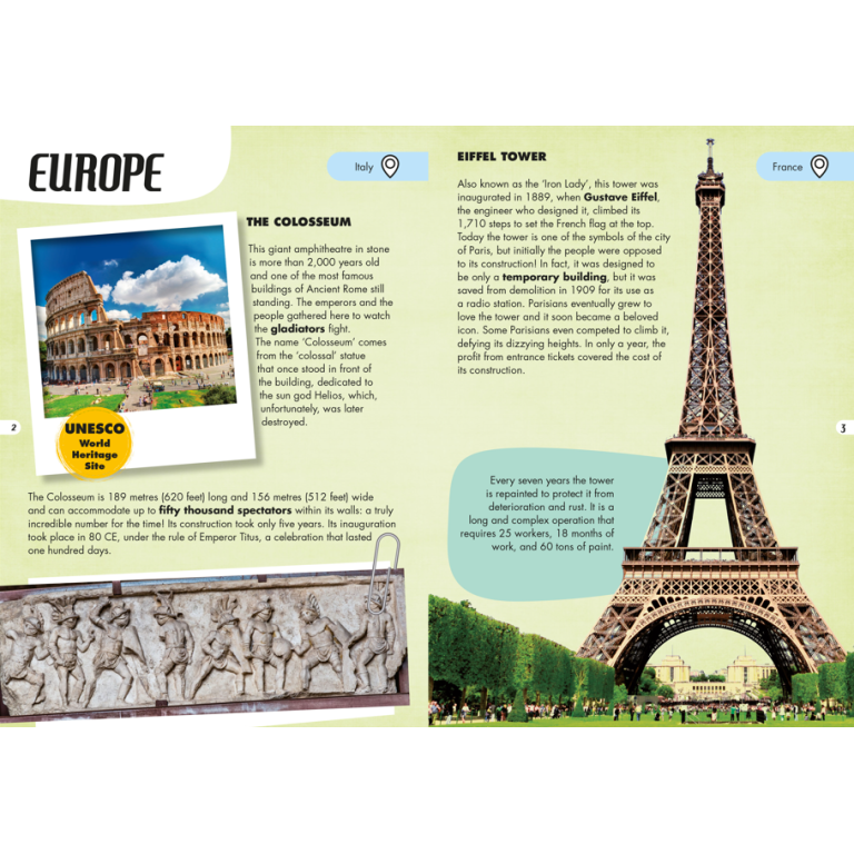 A new title in the successful Travel, Learn, Explore series that illustrates many of the monuments recognized as UNESCO World Heritage Sites, stimulating geographical learning thanks to the stickers to place on the puzzle.