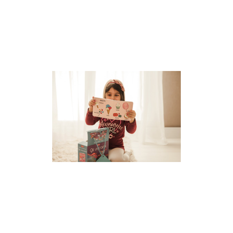 Discover the colorful world of unicorns! Flip through the booklet, build the puzzle, and learn to recognize the different elements that characterize the world of these magical creatures.