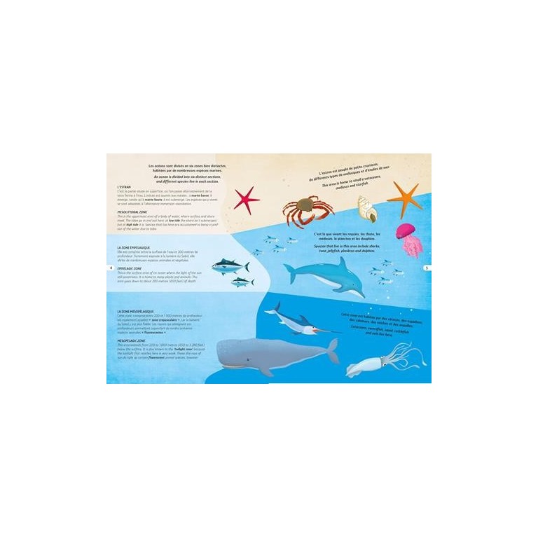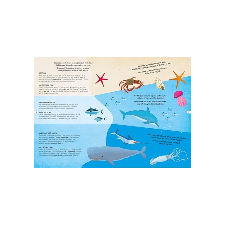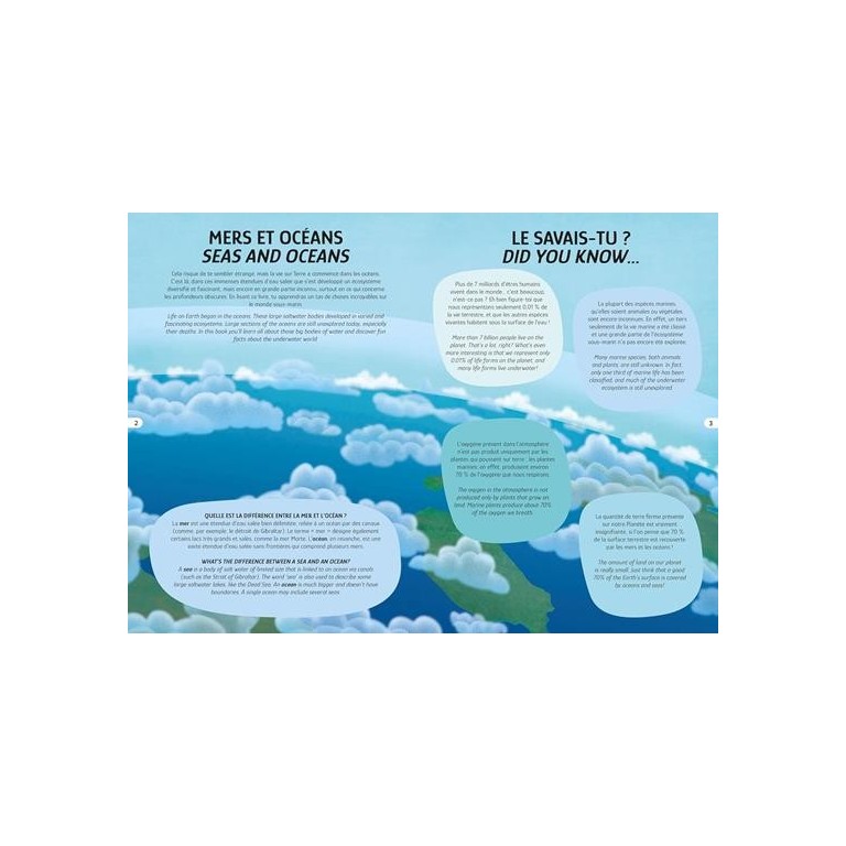 Bien qu’on l’appelle « Terre », notre Planète est principalement composée d’eau. Les immenses étendues d’eau, que sont les mers et les océans, abritent de magnifiques créatures et cachent des profondeurs spectaculaires pour la plupart inexplorées. Lis le livre, fais le puzzle et pars à la découverte des secrets du monde sous-marin.