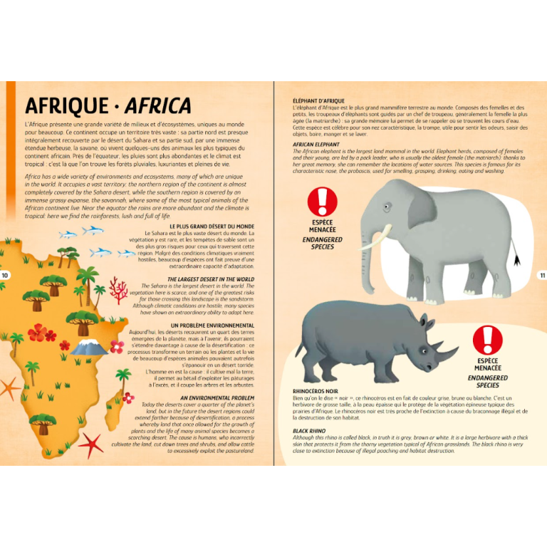 Le monde est en train de changer, et avec lui… les créatures qui l’habitent ! Assemble le puzzle pour connaître les animaux qui peuplent les différents continents, puis lis le livre pour en savoir plus sur les espèces menacées d’extinction